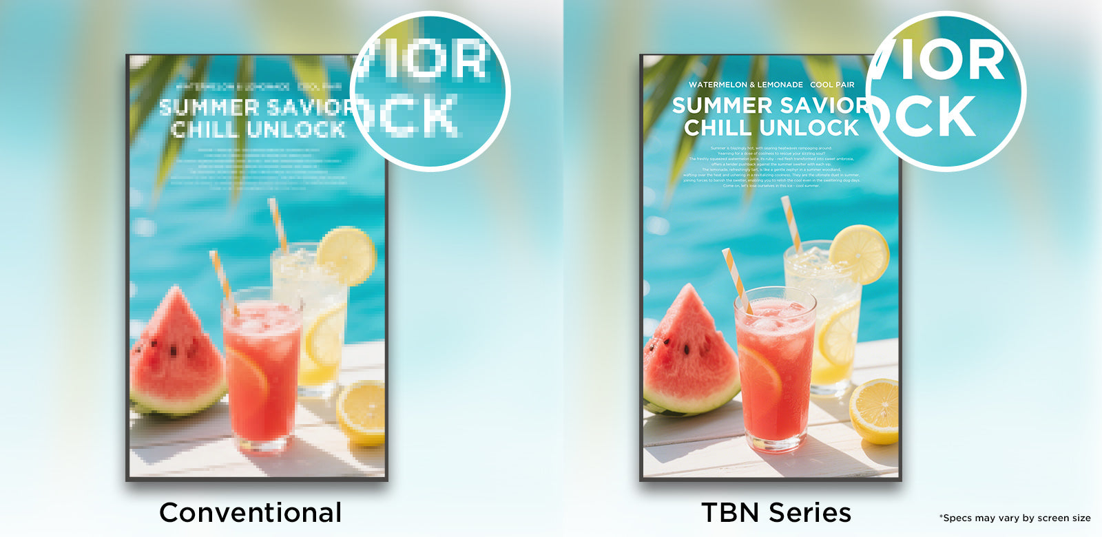 Transform your digital signage with the TCL TBN Series, featuring a powerful 4K UHD display and an ultra-high contrast ratio of 4000:1 for vibrant, lifelike images.