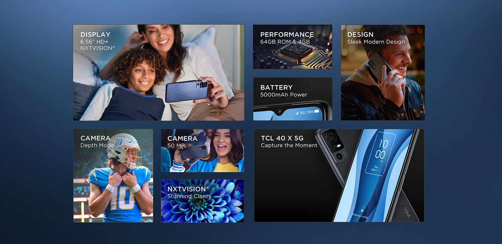 With a powerful 5000mAh battery that can give up to 24 hours of talking, streaming, or gaming2 the TCL 40 X 5G is designed to keep up.