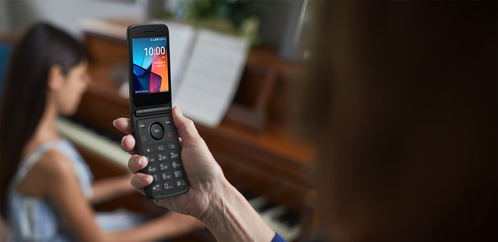 - Easy navigation keyboard with large buttons and dedicated shortcut keys for favorite contacts and messages.