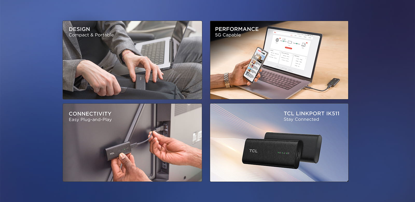 Introducing the TCL LINKPORT IK511, your ultimate companion for a secure and reliable 5G RedCap capable1 internet connection on the go. Enjoy instant, high-speed internet so you can stay connected with confidence- wherever, whenever- and take on those emails, video calls and streaming game day from your next big adventure.