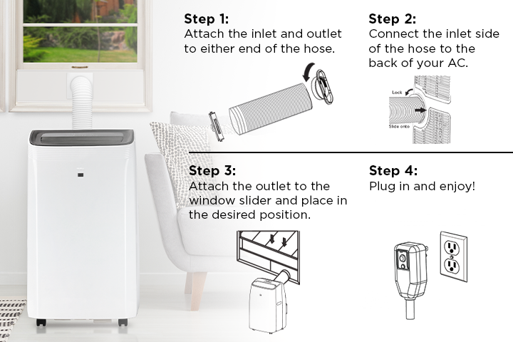Set up your portable AC unit in minutes with the simple installation kit and enjoy easy movement from room to room.
