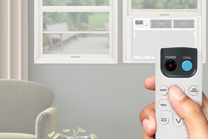 Control your AC from the comfort of your couch with the included remote. -