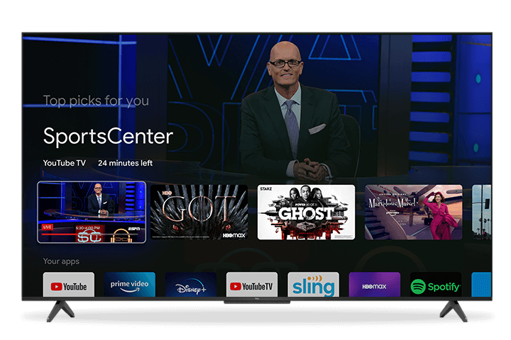 Google TV organizes movies and TV shows from all of your favorite services into a single screen. So it’s easy to find what to watch. Tune into live TV that’s seamlessly integrated with just a click.²