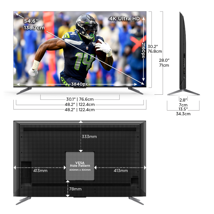 Imagine everything you want in a TV including 120Hz Panel Refresh Rate, Full Array PRO Local Dimming, High Brightness PRO LED Backlight, the advanced TCL AIPQ Engine Gen3, Dolby Vision IQ, Game Accelerator 240 with AMD FreeSync Premium Pro Certification, IMAX Enhanced Certification, Hands Free Voice Control, Backlit Remote, and Adjustable Width Stand