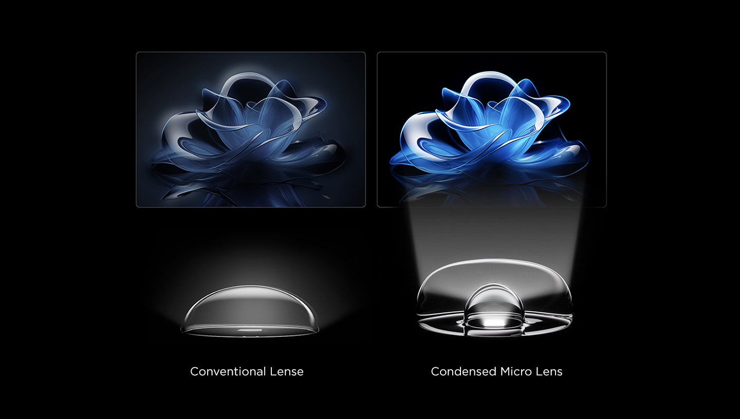 TCL's self-developed super condensed micro lens technology precisely controls light direction through its arch bridge dimming design. Its selection of nano-optical materials with greater plasticity form a golden curvature with super light-focusing properties, and precisely controls light point by point, greatly improving the backlight uniformity and halo control capabilities, making the picture details clearer.