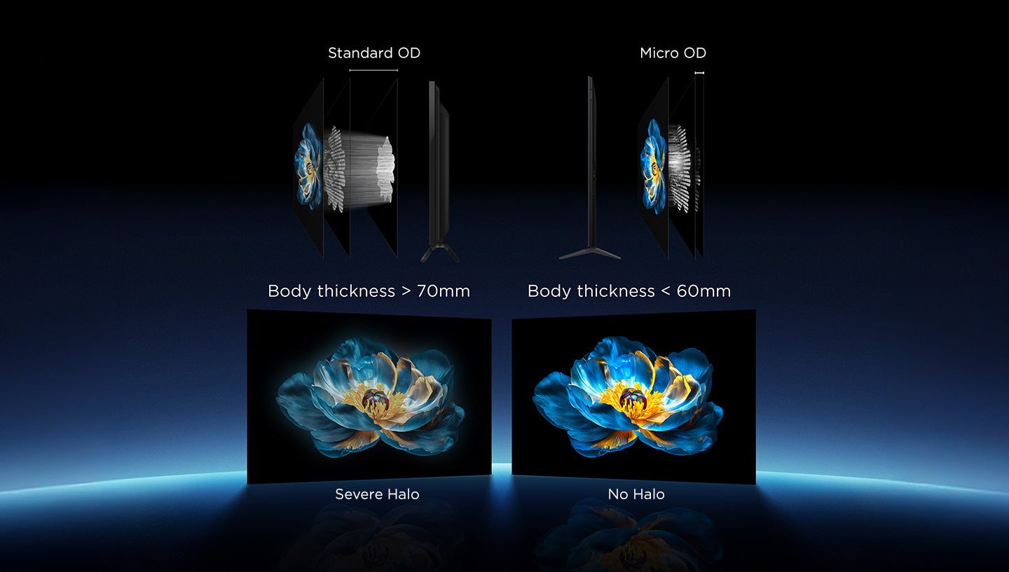 The TCL all-domain halo control technology covers the entire path from light generation to imaging, integrating high-efficiency light-emitting chips and self-developed lens technology, combined with Micro-OD, light and shadow control algorithms, and TCL's unique self-produced high-end HVA Panel technology. Through system-level precise control of light, it effectively solves the halo problem and delivers a premium viewing experience.