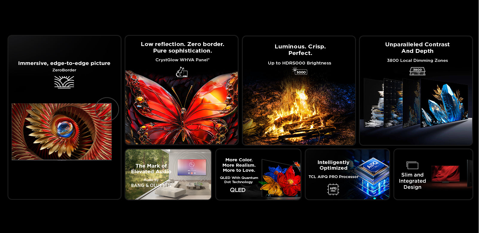 TCL's QD-Mini LED combines the merits of QLED and OLED technologies, transforming the traditional backlight into lighting that is close to pixel-level precision. It also utilizes the world's leading QLED technology, offering contrast and color gamut comparable to OLED, while also providing higher peak brightness and a longer lifespan. This represents the future technology of large-screen displays.