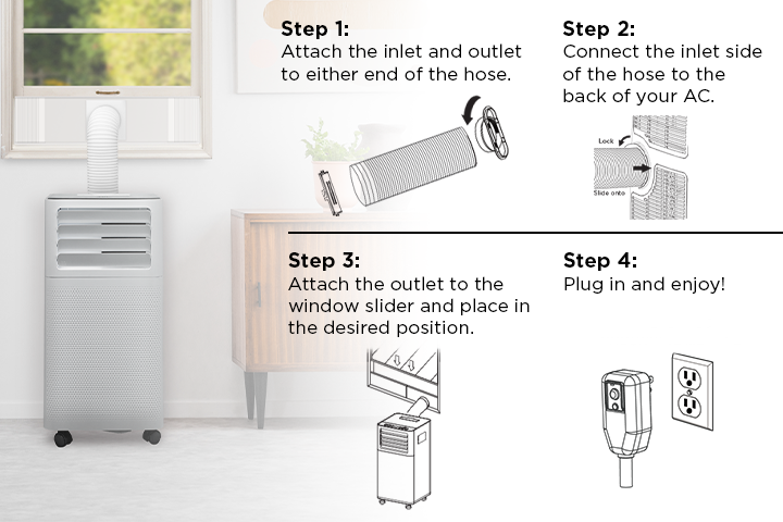 Set up your portable AC unit in minutes with the simple installation kit and enjoy easy movement from room to room. -