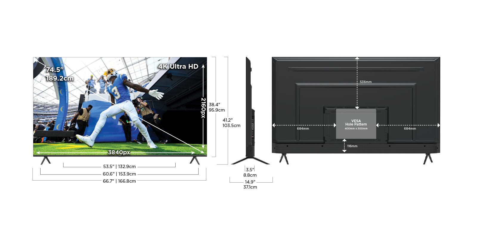 Experience incredible detail with 4X the resolution of 1080p Full HDTVs. -