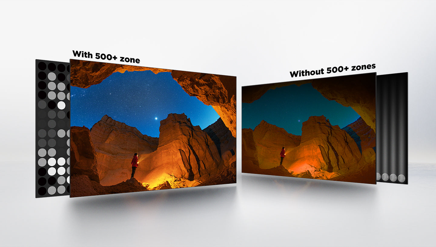 Local dimming that dynamically adapts to on-screen content for deep blacks and great contrast.