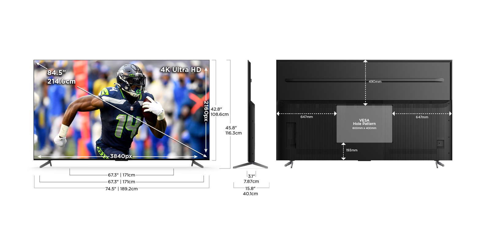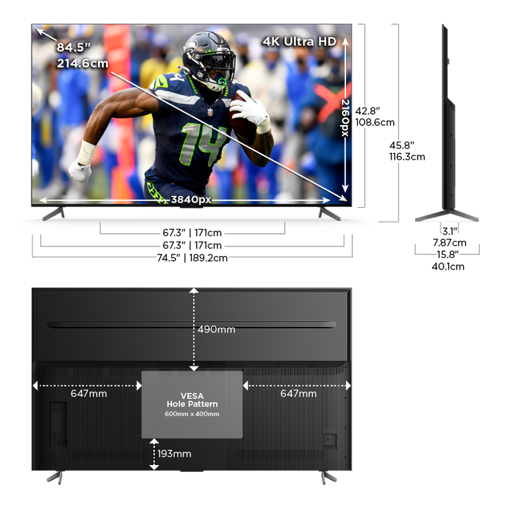 Imagine everything you want in a TV including 120Hz Panel Refresh Rate, Full Array PRO Local Dimming, High Brightness PRO LED Backlight, the advanced TCL AIPQ Engine Gen3, Dolby Vision IQ, Game Accelerator 240 with AMD FreeSync Premium Pro Certification, IMAX Enhanced Certification, Hands Free Voice Control, Backlit Remote, and Adjustable Width Stand