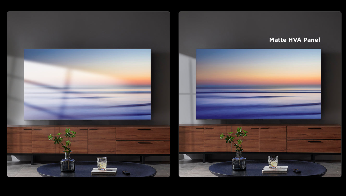 The Matte HVA Panel is an upgraded version of the HVA Panel, maintaining an ultra high native contrast ratio of 5000:1*. It features nano crystal technology on the screen surface, which effectively blocks reflections and interference from strong ambient light, allowing you to enjoy movies without fear of sunlight or lamplight; it also has an ultra-wide viewing angle, ensuring that image details remain crisp and visible all day.