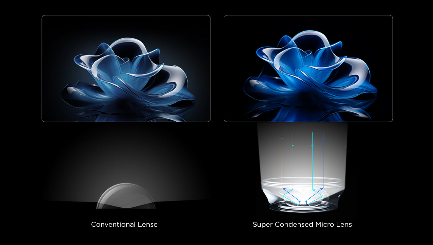 96% Improvement In Halo Control Capability | 8 Times Increase In Optical Stability | 112% Enhancement In Backlight Uniformity | Super Condensed Micro Lens | Conventional Lens