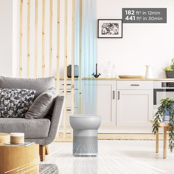 Filter the air in your room in as little as 12 minutes, removing harmful microbes so you can breathe easy.* -