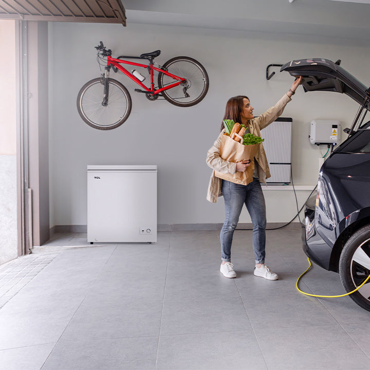 Freezer is designed for ambient temperatures up to 110° F so it can be placed in the garage and keep food frozen.