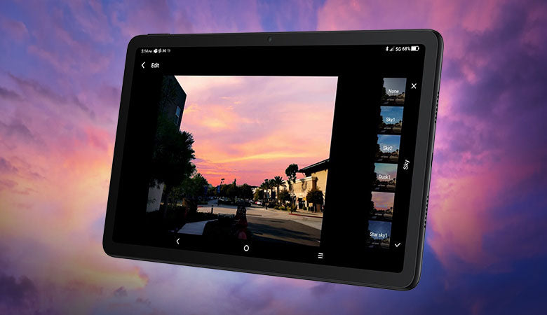 The TCL TAB Pro 5G comes with a 13MP high resolution camera, powered by NXTVISION technology, that allows you to enhance pictures after you take them for the best color, contrast, and sharpness, whether capturing stunning panoramic shots, social-ready photos, or steady HD videos.