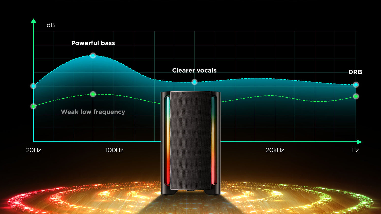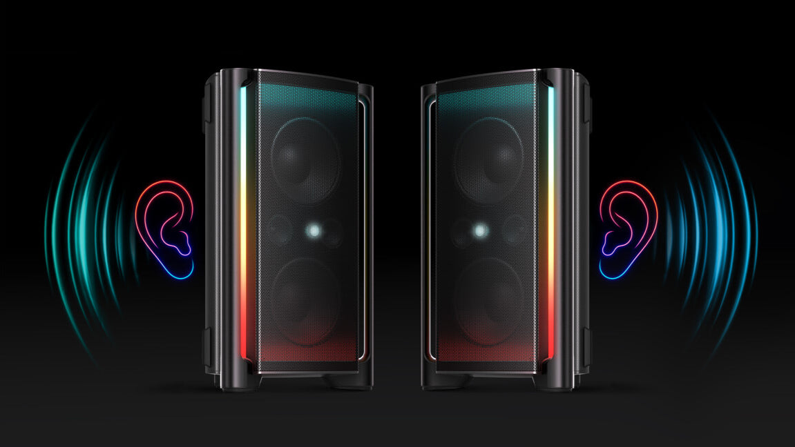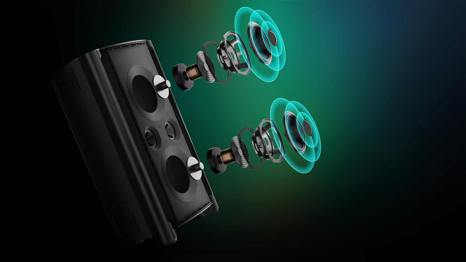 Two 5.5-inch woofers bring louder sound through oversized diaphragms while reducing bass distortion, so you can feel the surging bass even in large spaces.